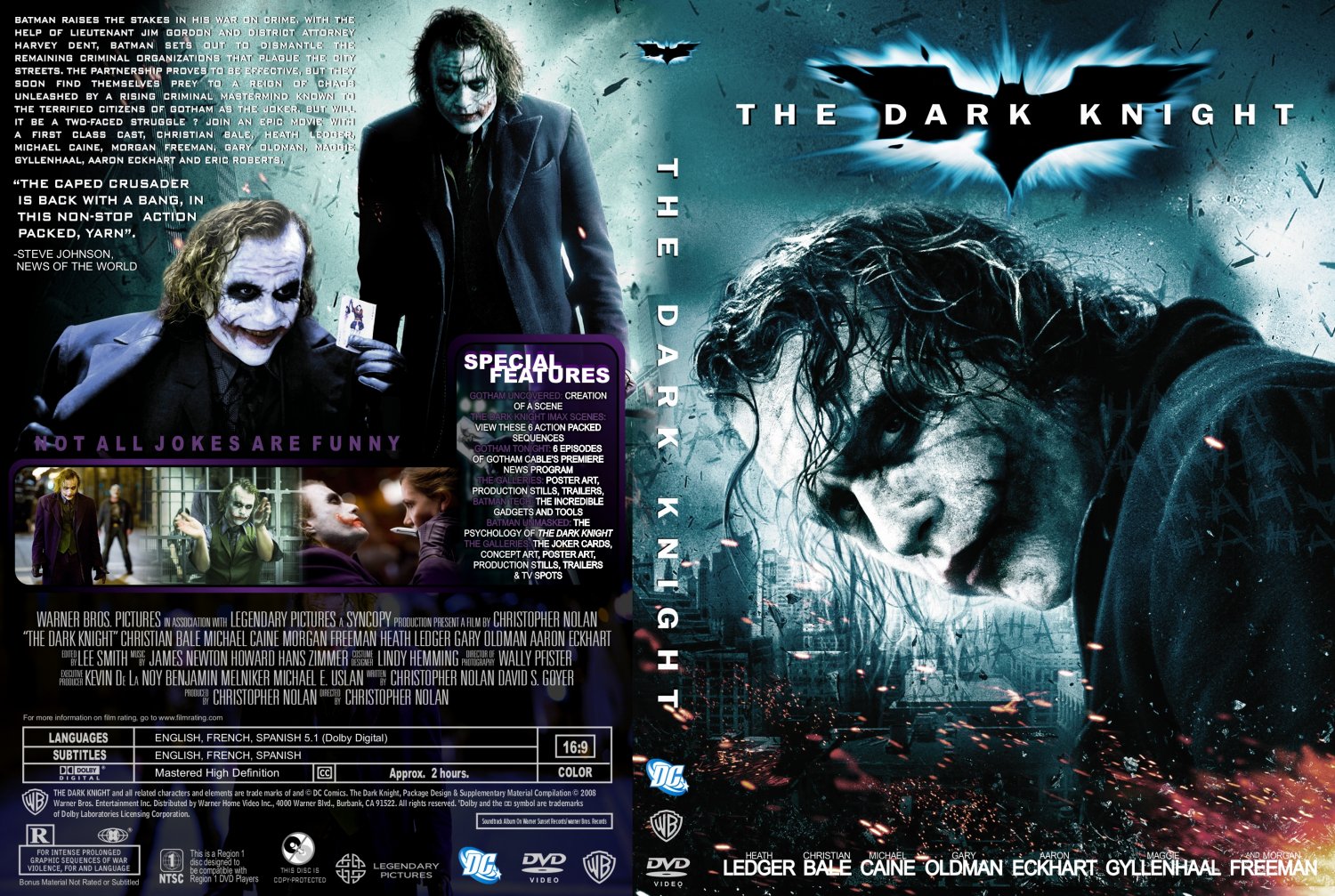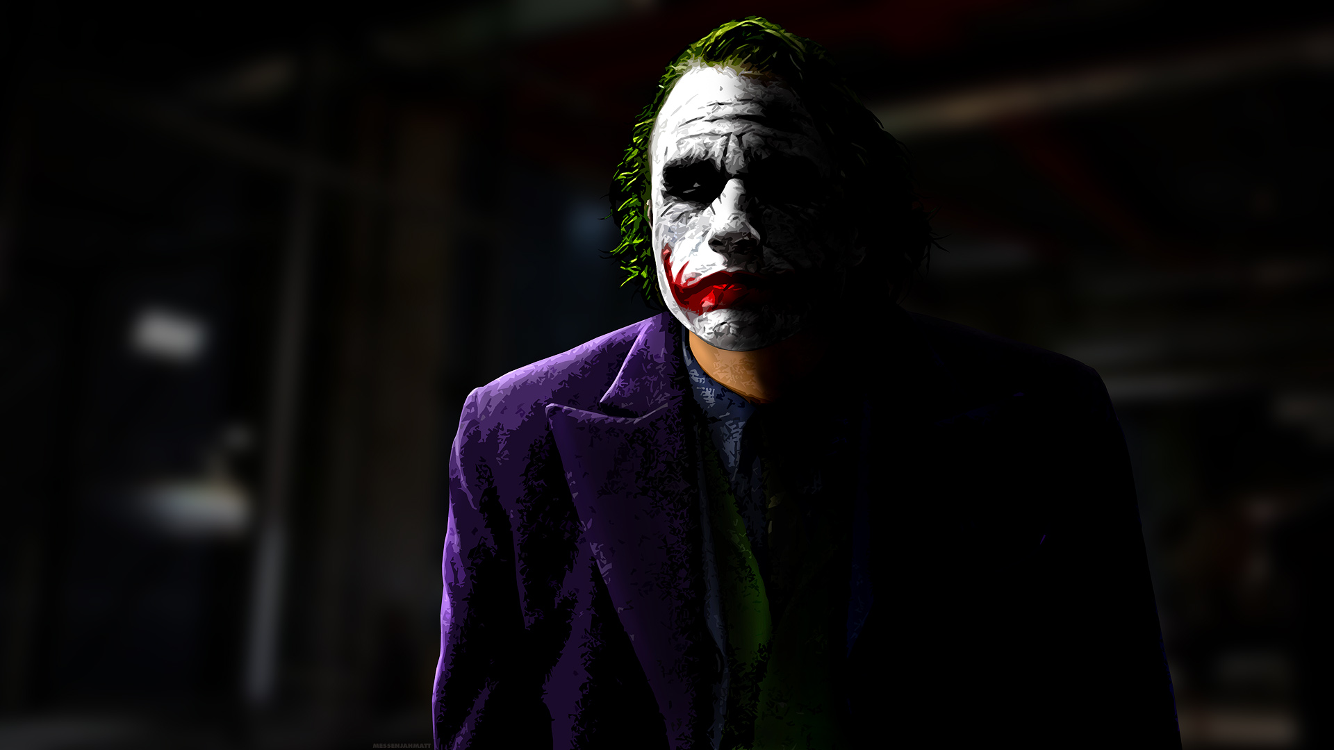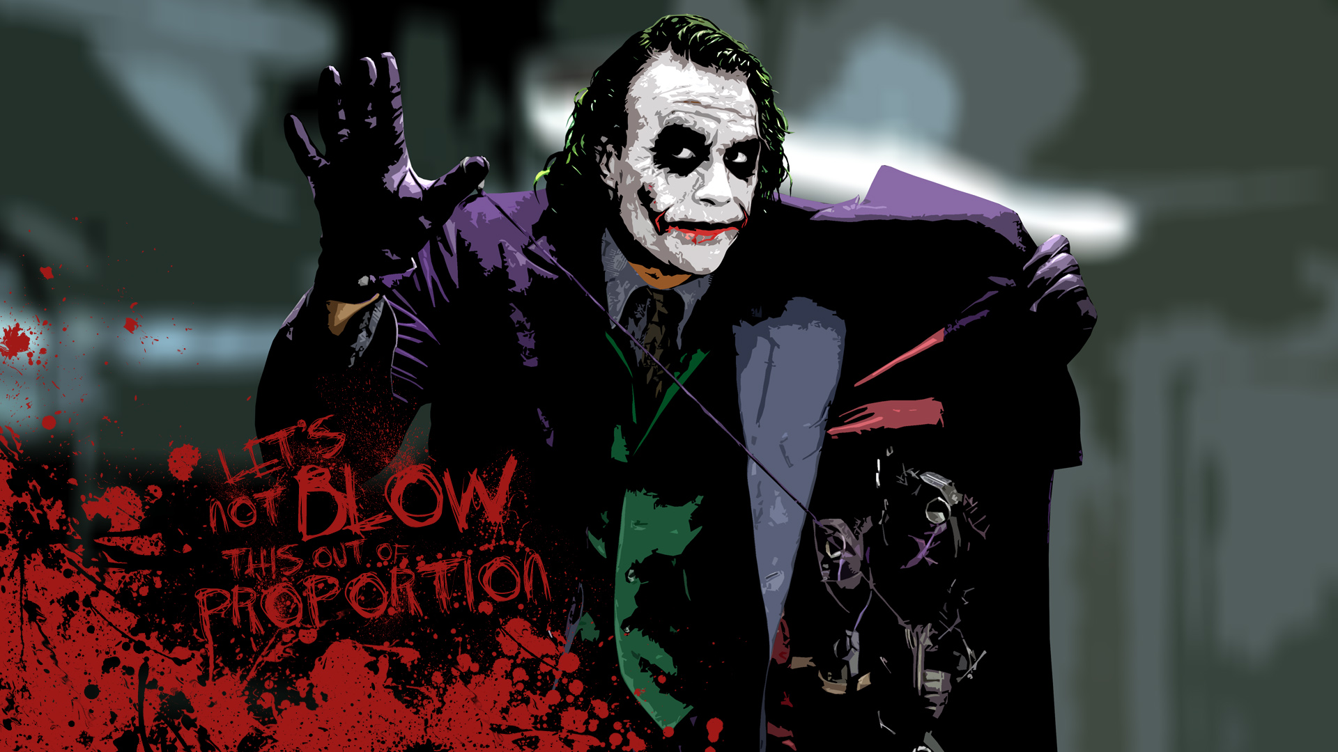 جوکر: میخوای بدونی چطور این زخما رو برداشتم؟ پدرم یه الکلی معتاد بود، و یه شب بیش از همیشه به سرش زد. مامان چاقوی آشپزخونه رو برداشت تا از خودش دفاع کنه... پدرم از این کار خوشش نیومد... حتی یه ذره... پس، در حالی که من تماشا میکردم، چاقو رو زد به خود مامانم و در همین حال میخندید... روش رو برگردوند طرف من و گفت: "چرا این قدر جدی؟" با چاقو اومد سمت من "چرا این قدر جدی؟" تیغهی چاقو رو گذاشت تو دهانم "بذار یه لبخند رو این چهره بکشیم" و چرا این قدر جدی؟